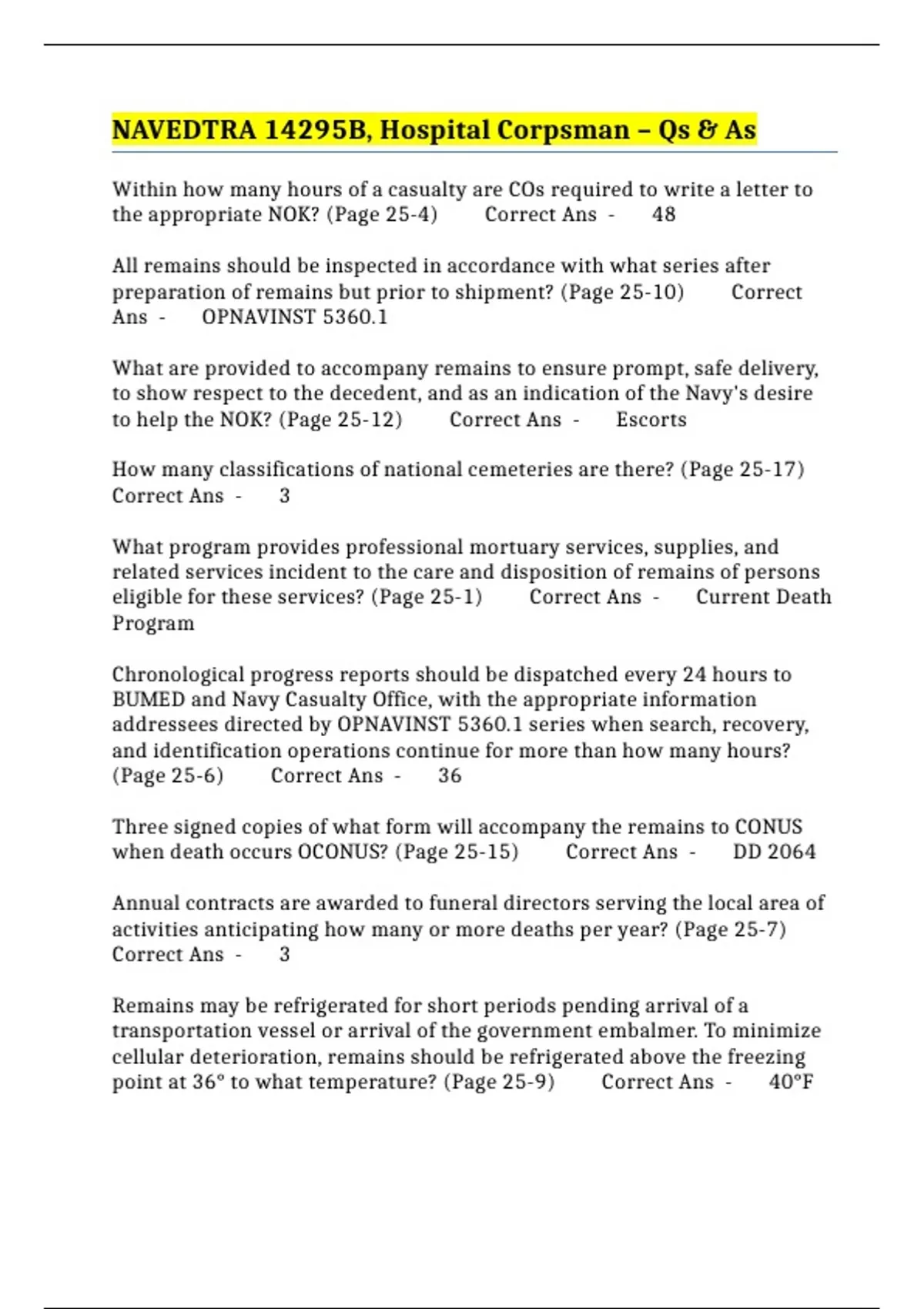 of death? (Page 25-5) Correct Ans - NAVMED P-117