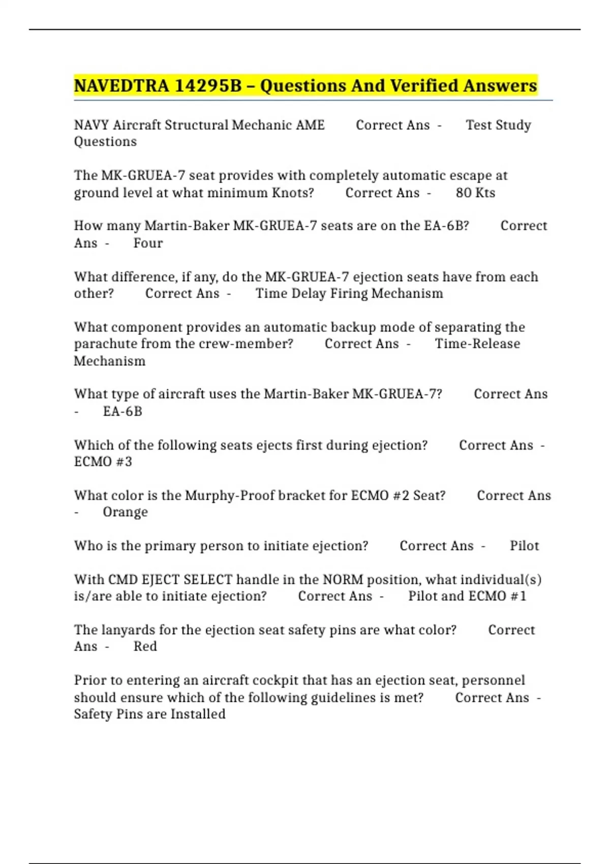 ,Who may work on ejection seats? Correct Ans - Qualified personnel