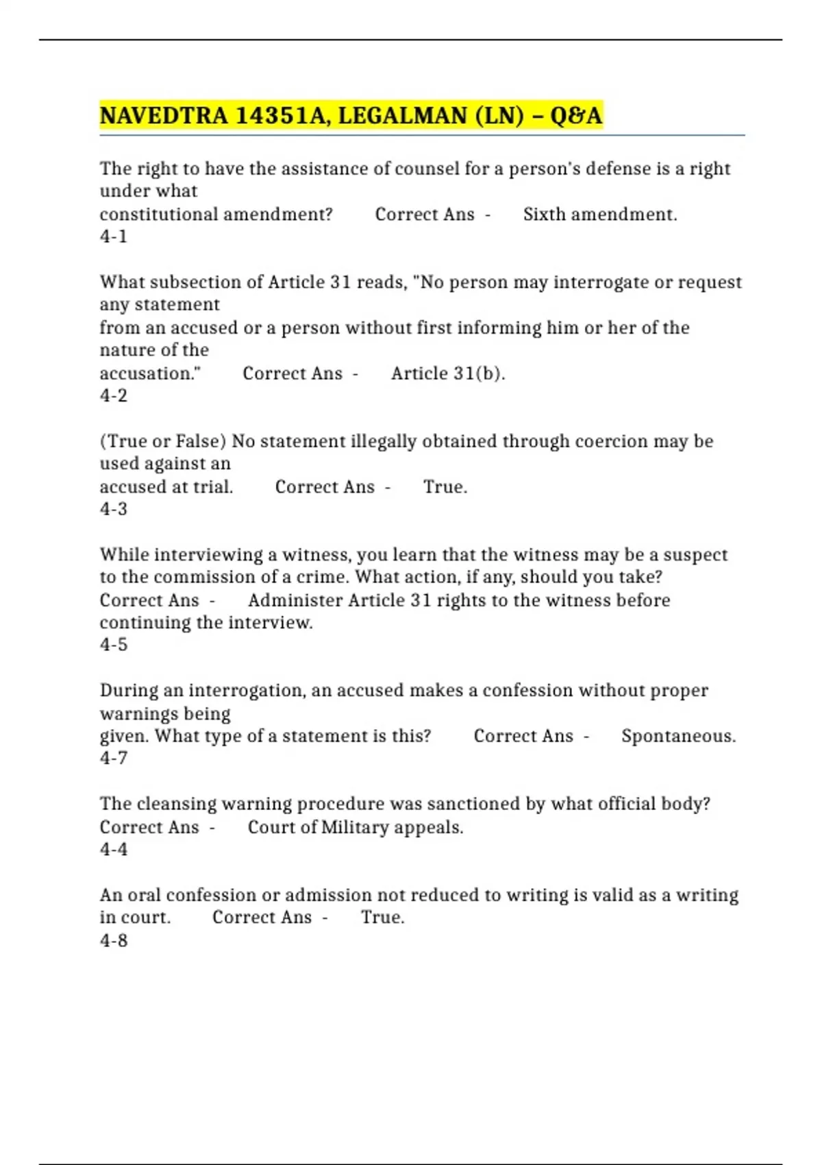 accusation." Correct Ans - Article 31(b).