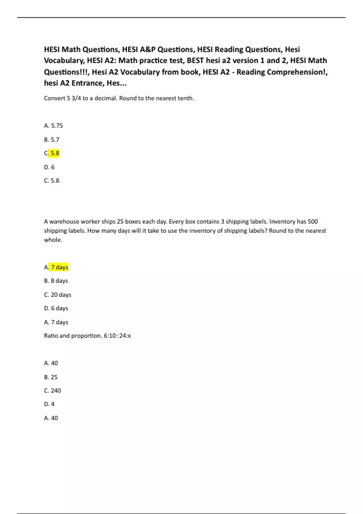 Vocabulary, HESI A2: Math practice test, BEST hesi a2 version 1 and 2, HESI Math