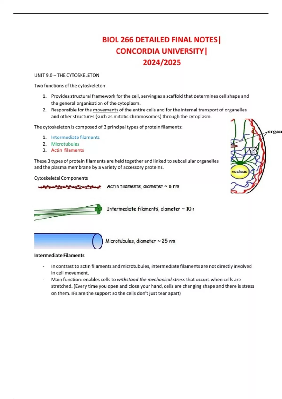 BIOL 266 DETAILED FINAL NOTES| CONCORDIA UNIVERSITY| 2024/2025