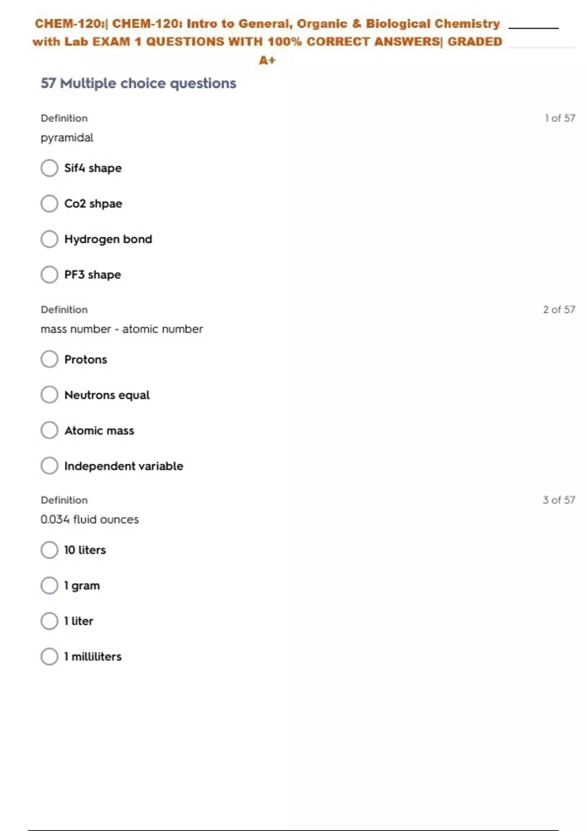 CHEM 120 Chamberlain EXAM 1