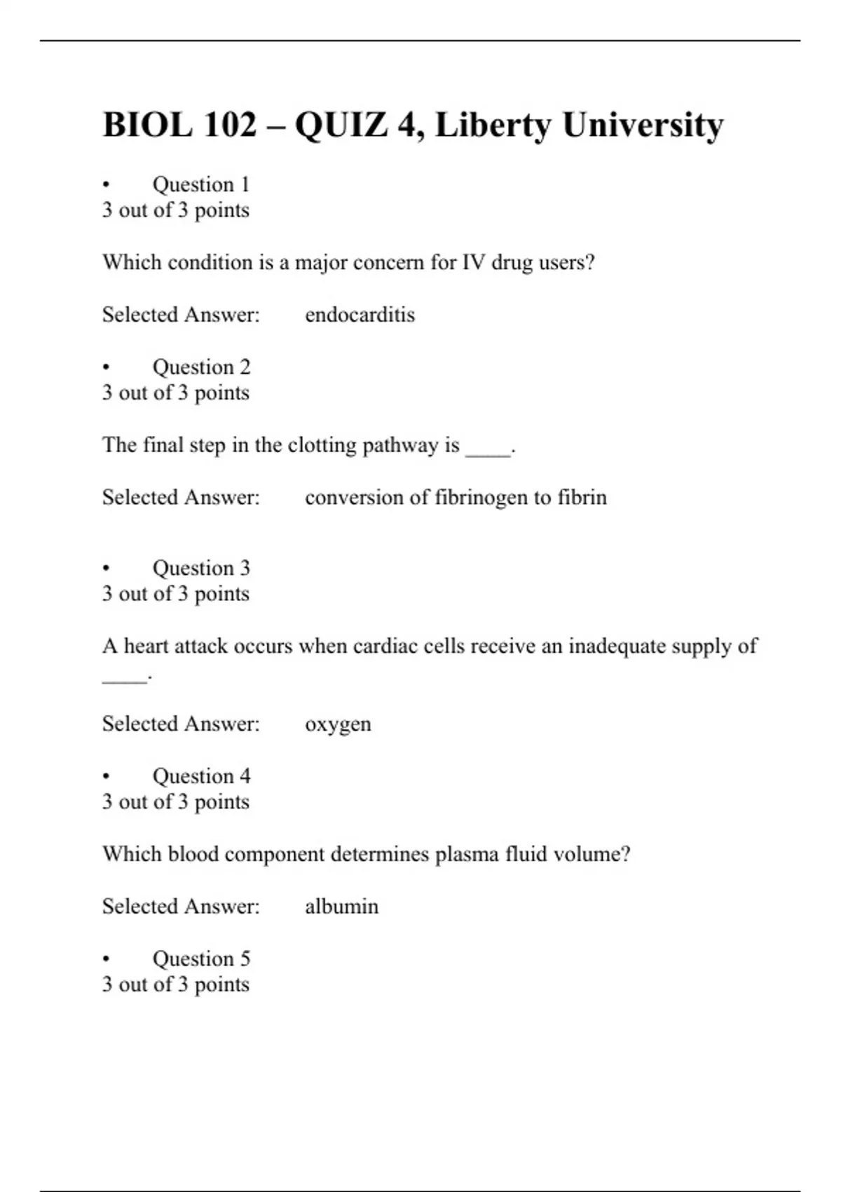 BIOL 102 QUIZ 4 (3 Versions), BIOL 102 Principles of Human Biology, Liberty University