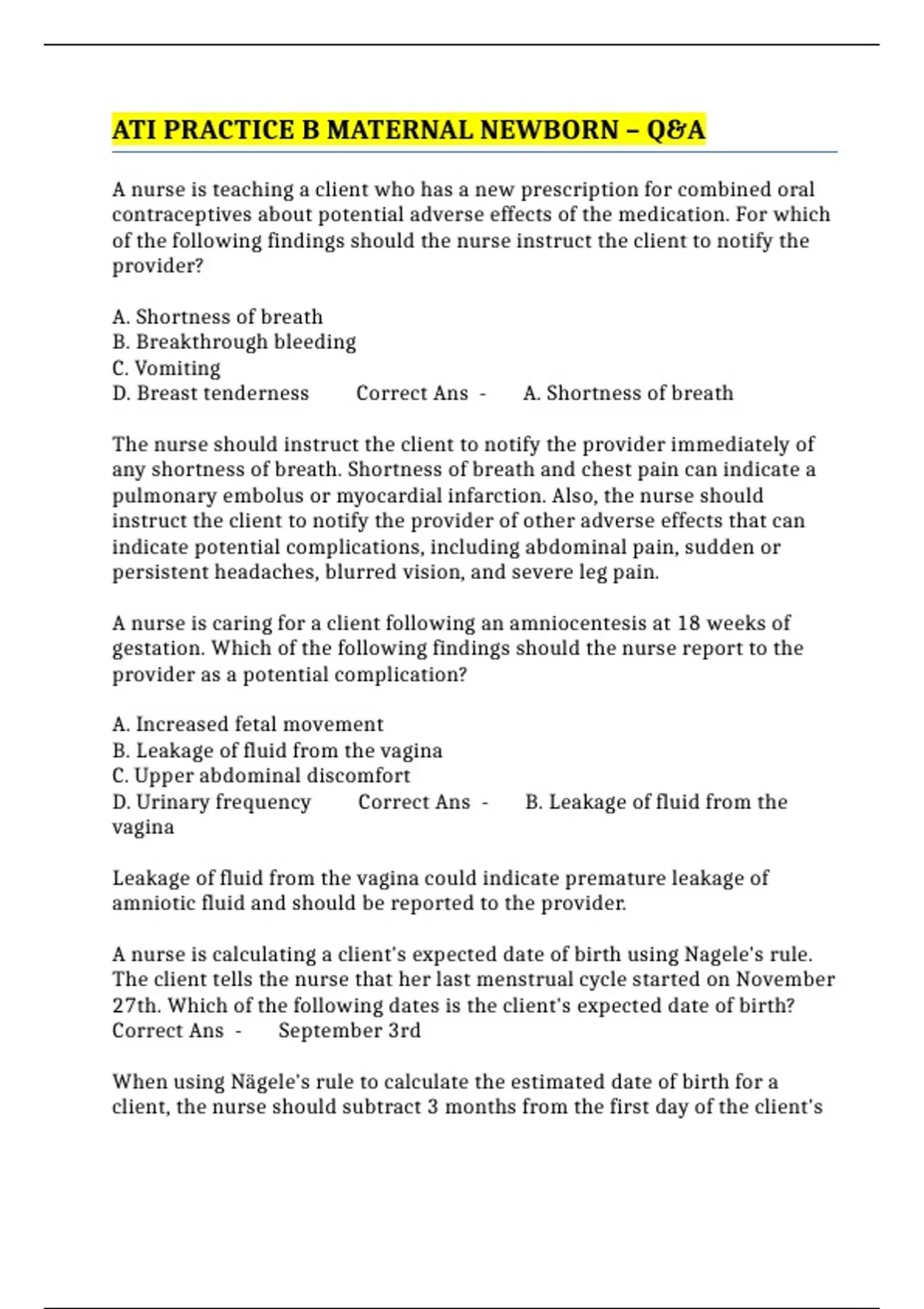 D. Breast tenderness Correct Ans - A. Shortness of breath