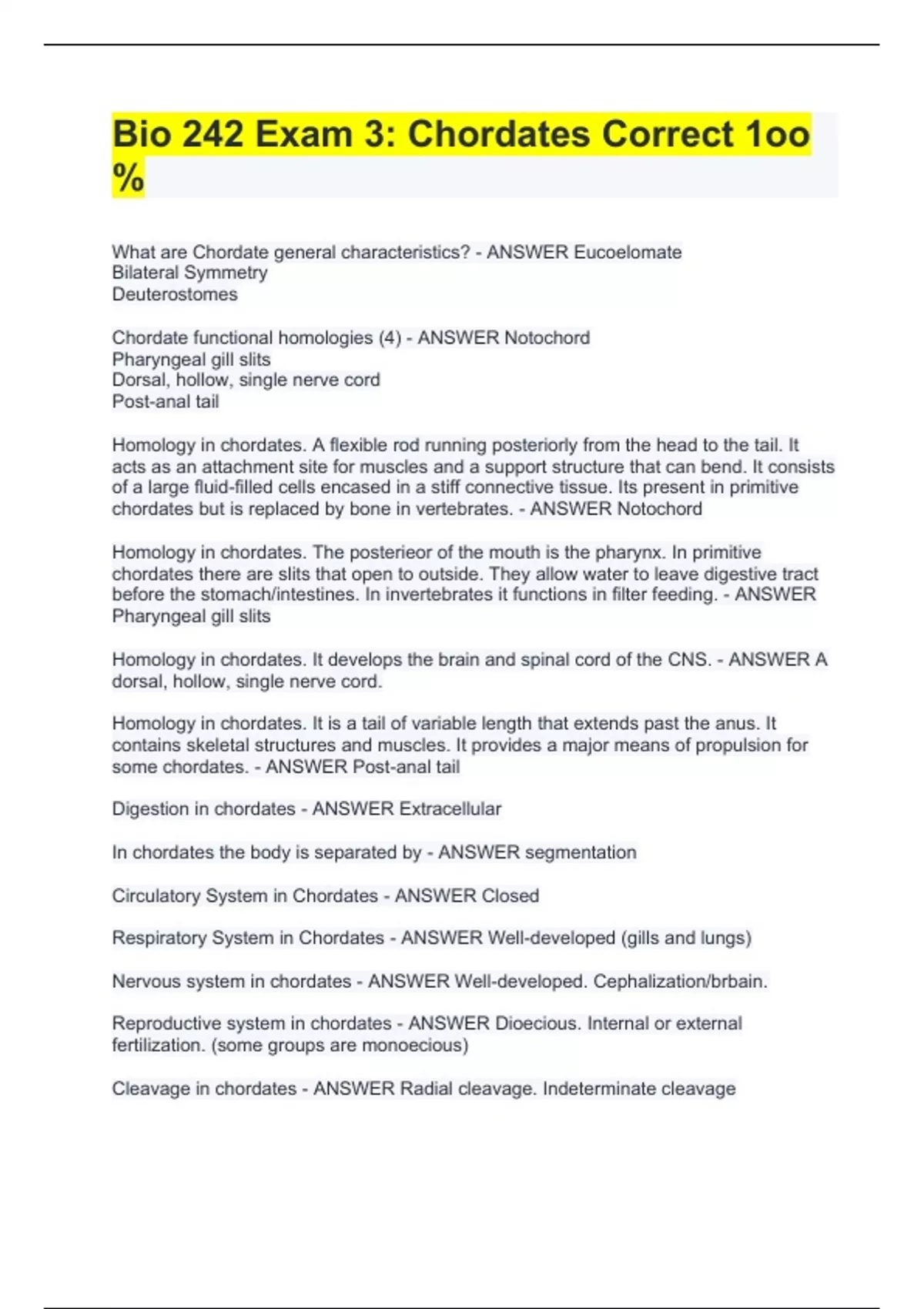 Bio 242 Exam 3: Chordates Correct 1oo%
