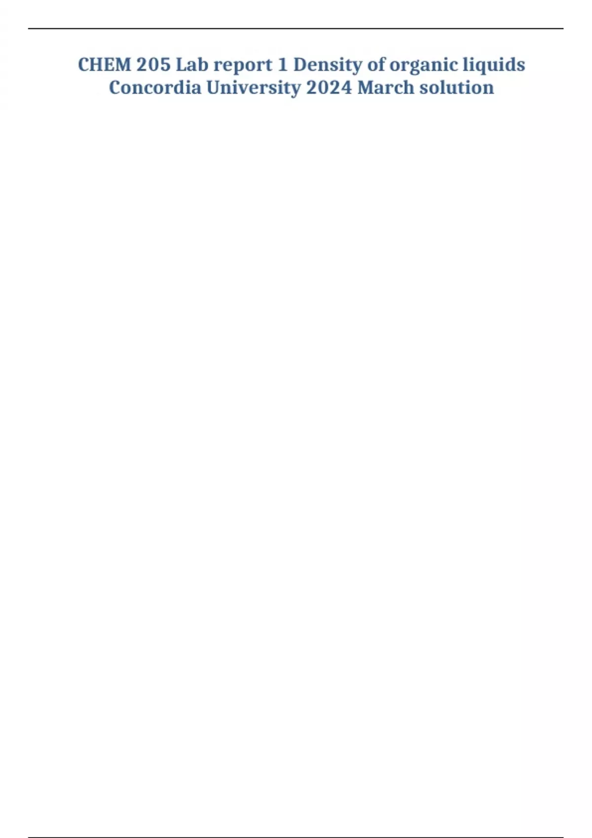 CHEM 205 Lab report 1 Density of organic liquids Concordia University 2024 March solution