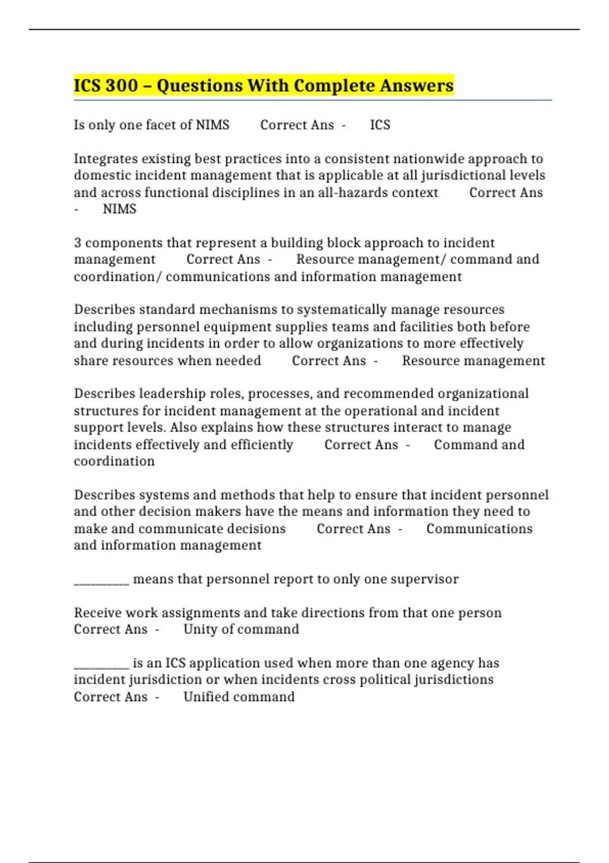 ICS 300 – Questions With Complete Answers