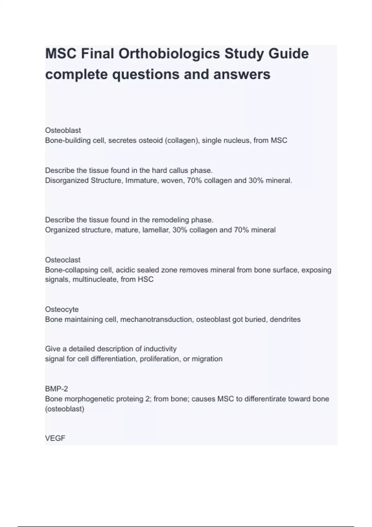 MSC Final Orthobiologics Study Guide complete questions and answers