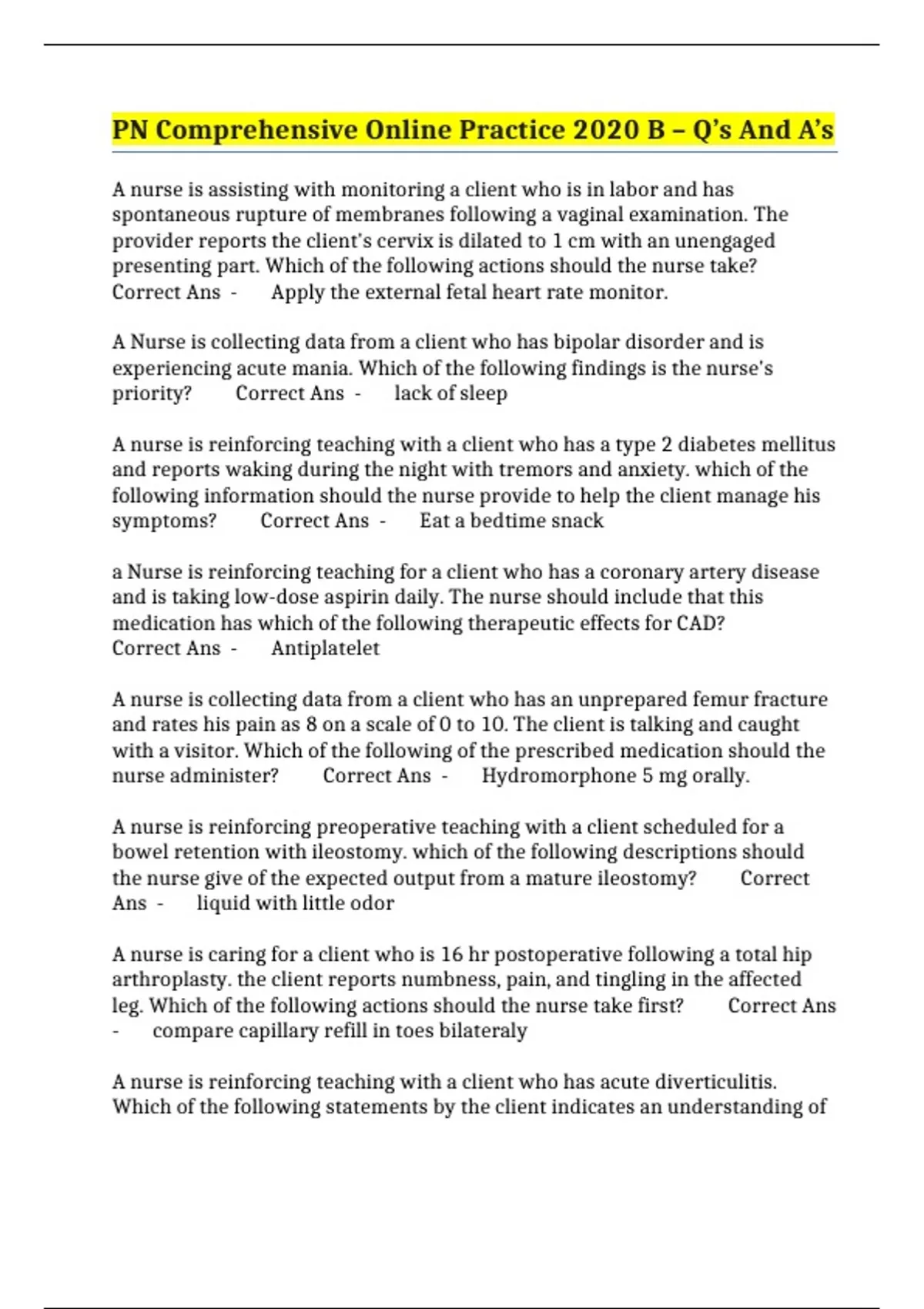 PN Comprehensive Online Practice 2020 B – Q’s And A’s