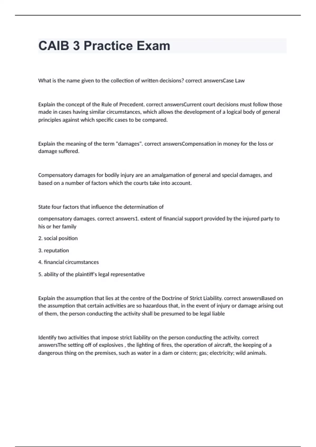 CAIB 3 Practice Exam 2024 with 100% correct answers