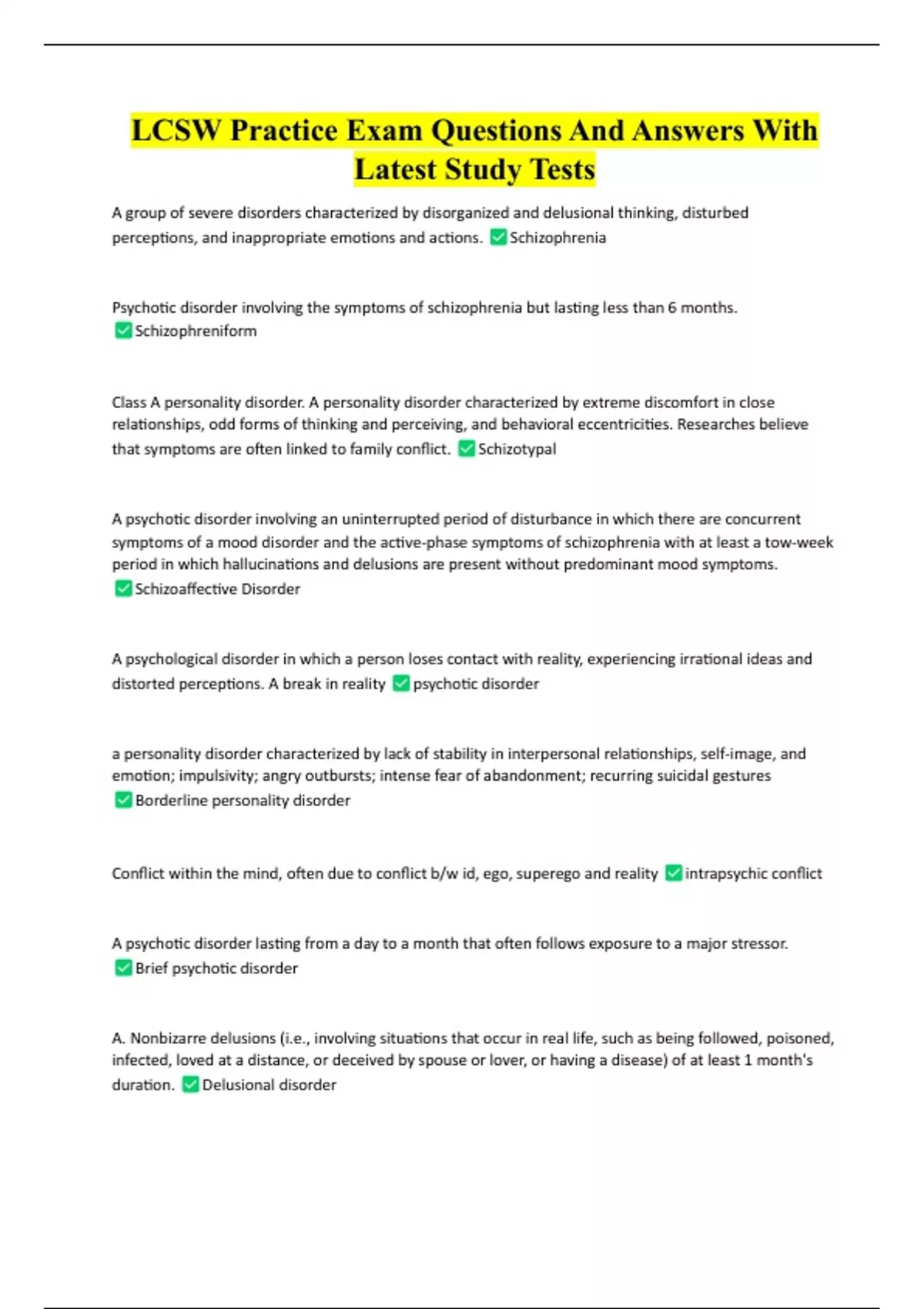 LCSW Practice Exam Questions And Answers With Latest Study Tests LCSW Practice Exam Questions And Answers With Latest Study Tests