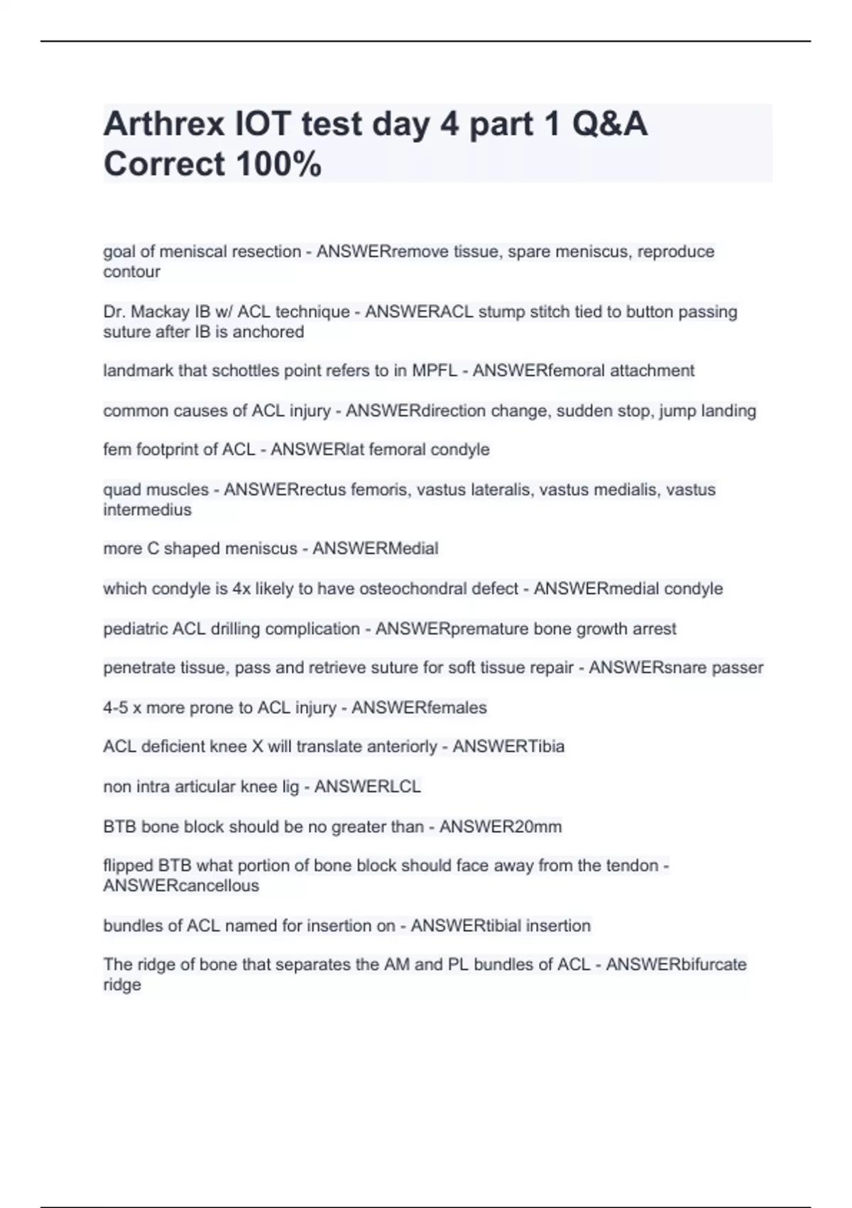 Arthrex IOT test day 4 part 1 Q&A Correct 100%