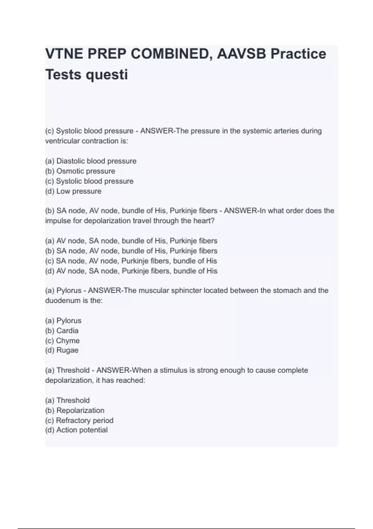 VTNE PREP COMBINED, AAVSB Practice Tests Questions with Explained Answers
