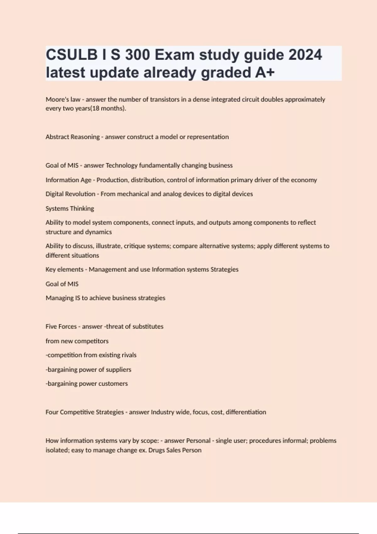 CSULB I S 300 Exam study guide 2024 latest update already graded A+