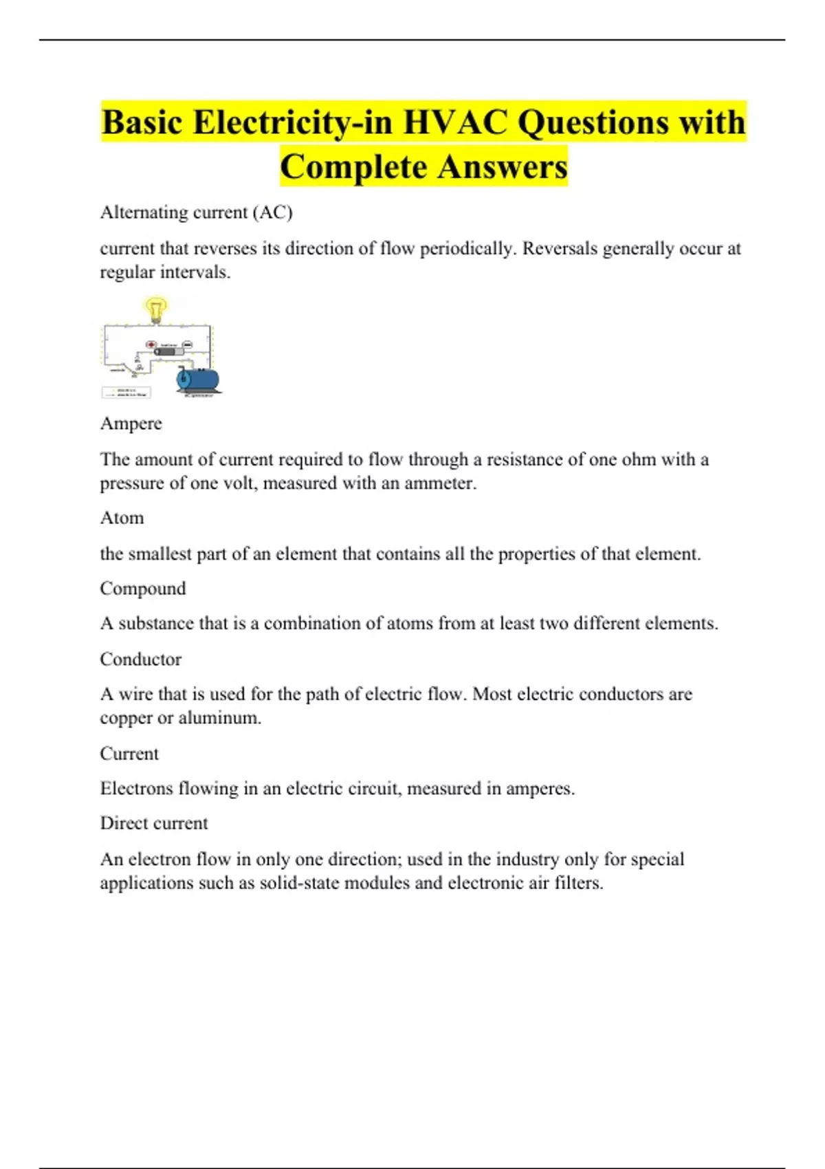 Basic Electricity-in HVAC Questions with Complete Answers