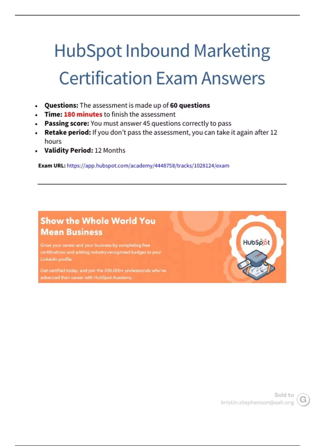 HubSpot Inbound Marketing Certification Exam Answers