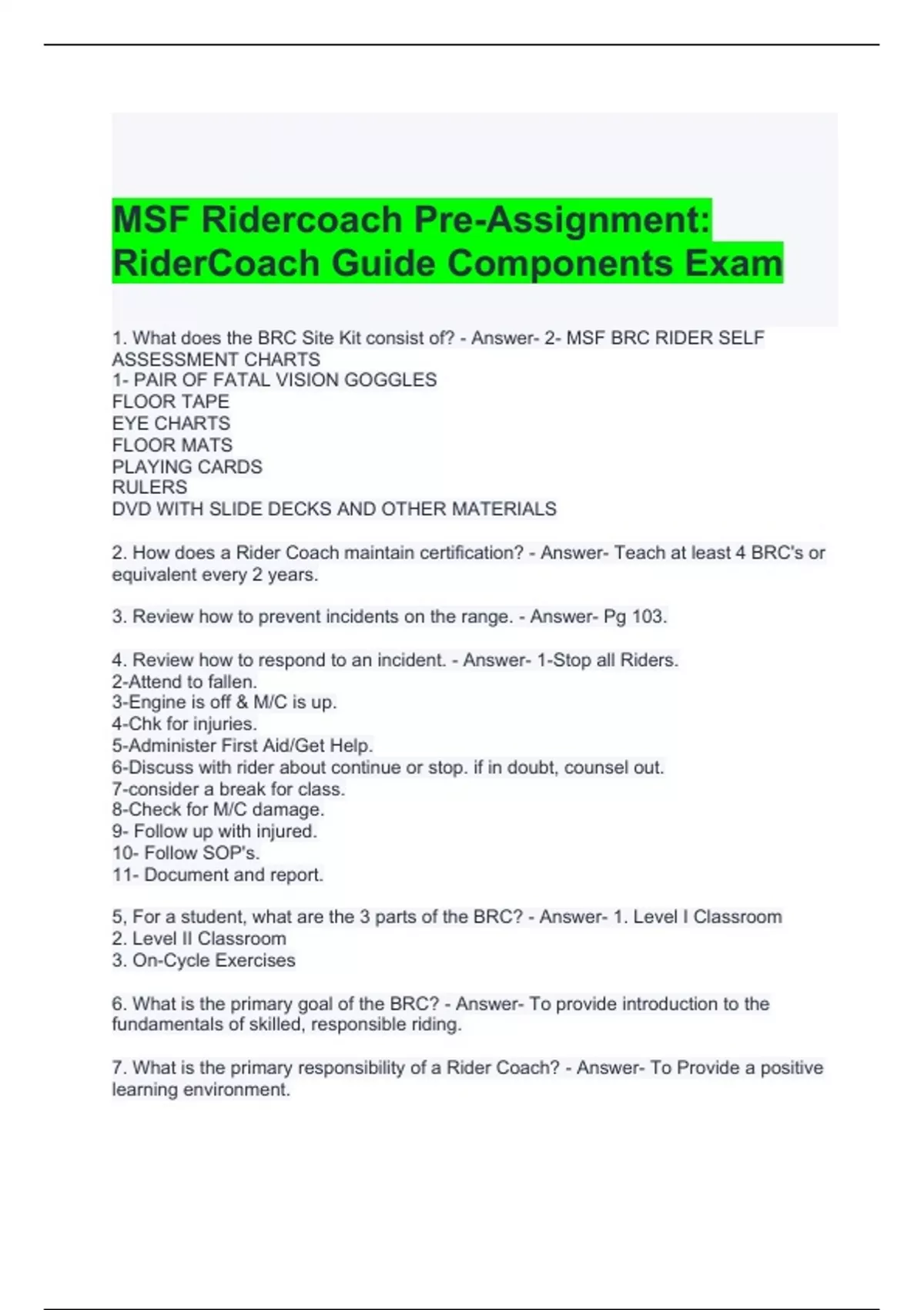 MSF Ridercoach Pre-Assignment RiderCoach Guide Components Exam 2024