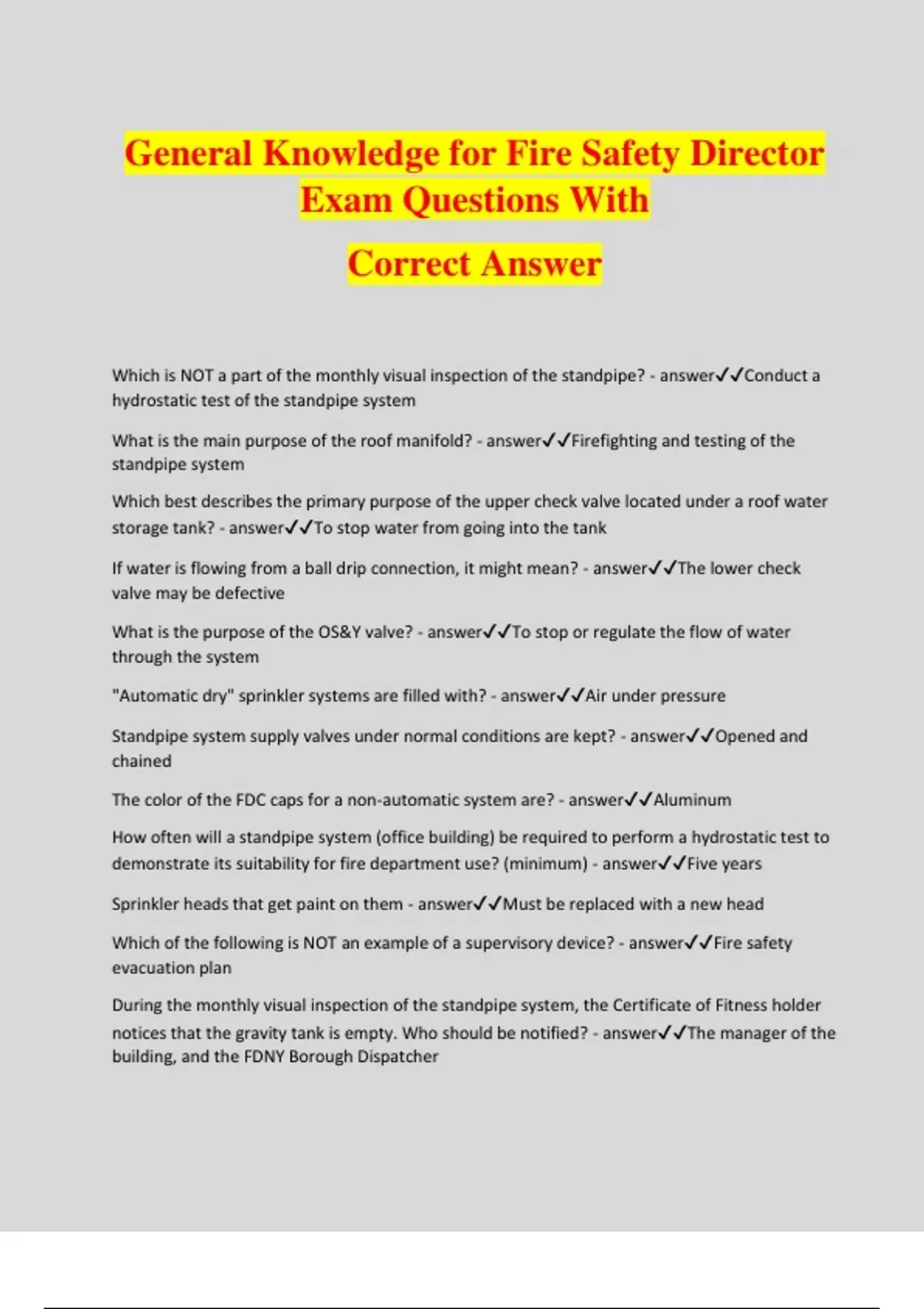 General Knowledge for Fire Safety Director Exam Questions With Correct Answer