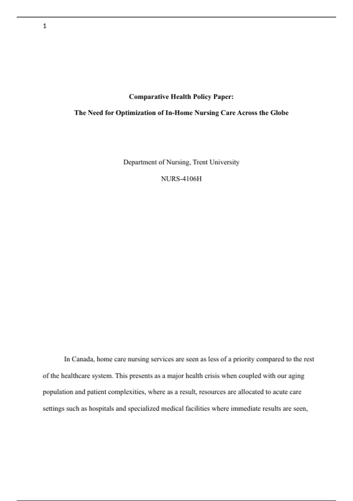 Comparative Health Policy Paper: