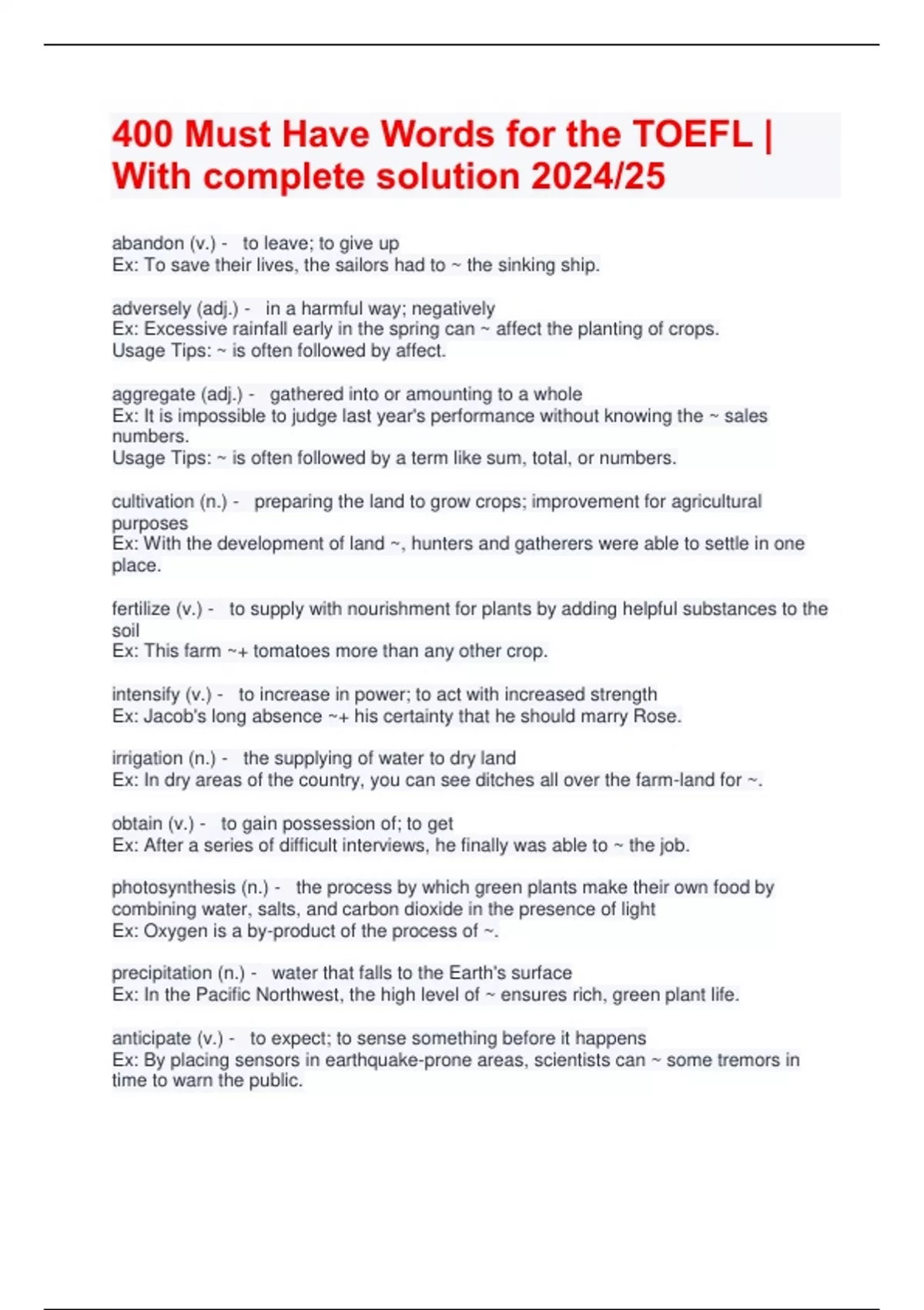 400 Must Have Words for the TOEFL | With complete solution 2024/25