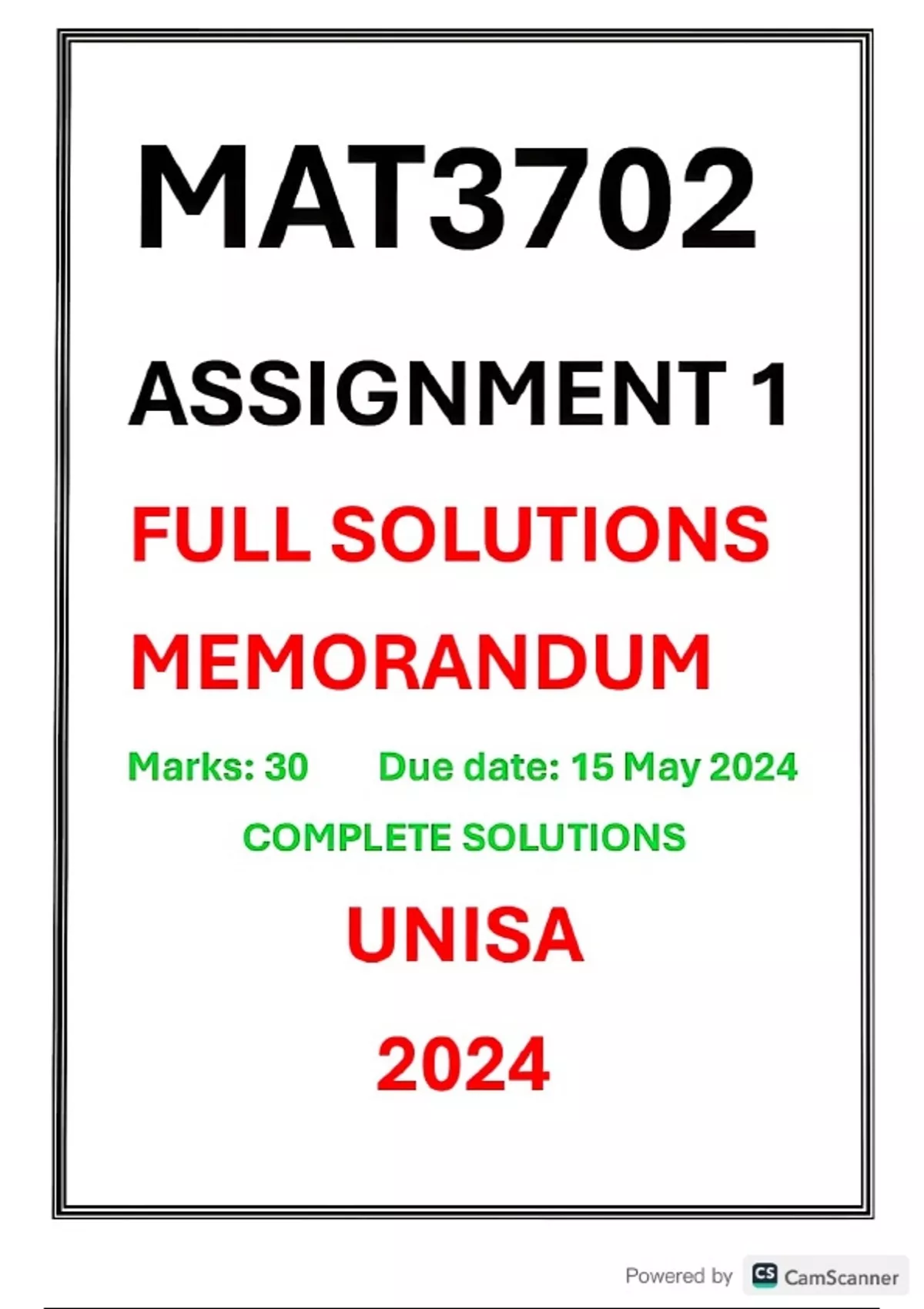 - MAT3702 Assignment 1 Complete Solutions UNISA 2024