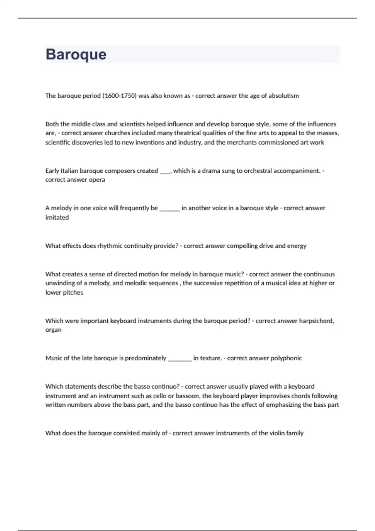 baroque complete exam questions correctly answered