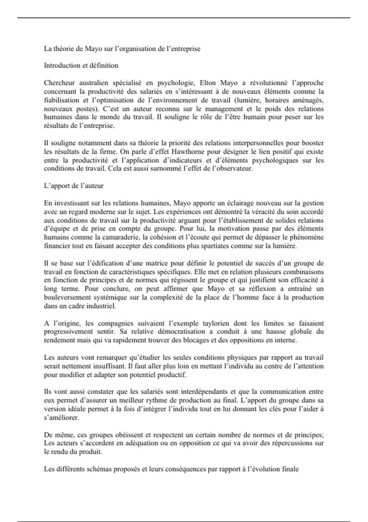 long terme. Pour conclure, on peut affirmer que Mayo et sa réflexion a entraîné un