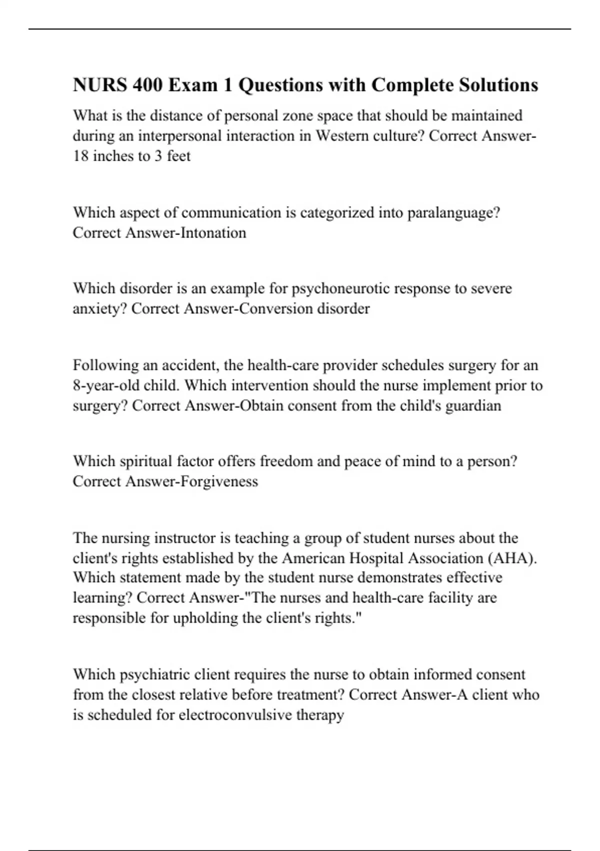 NURS 400 Exam 1 Questions with Complete Solutions.