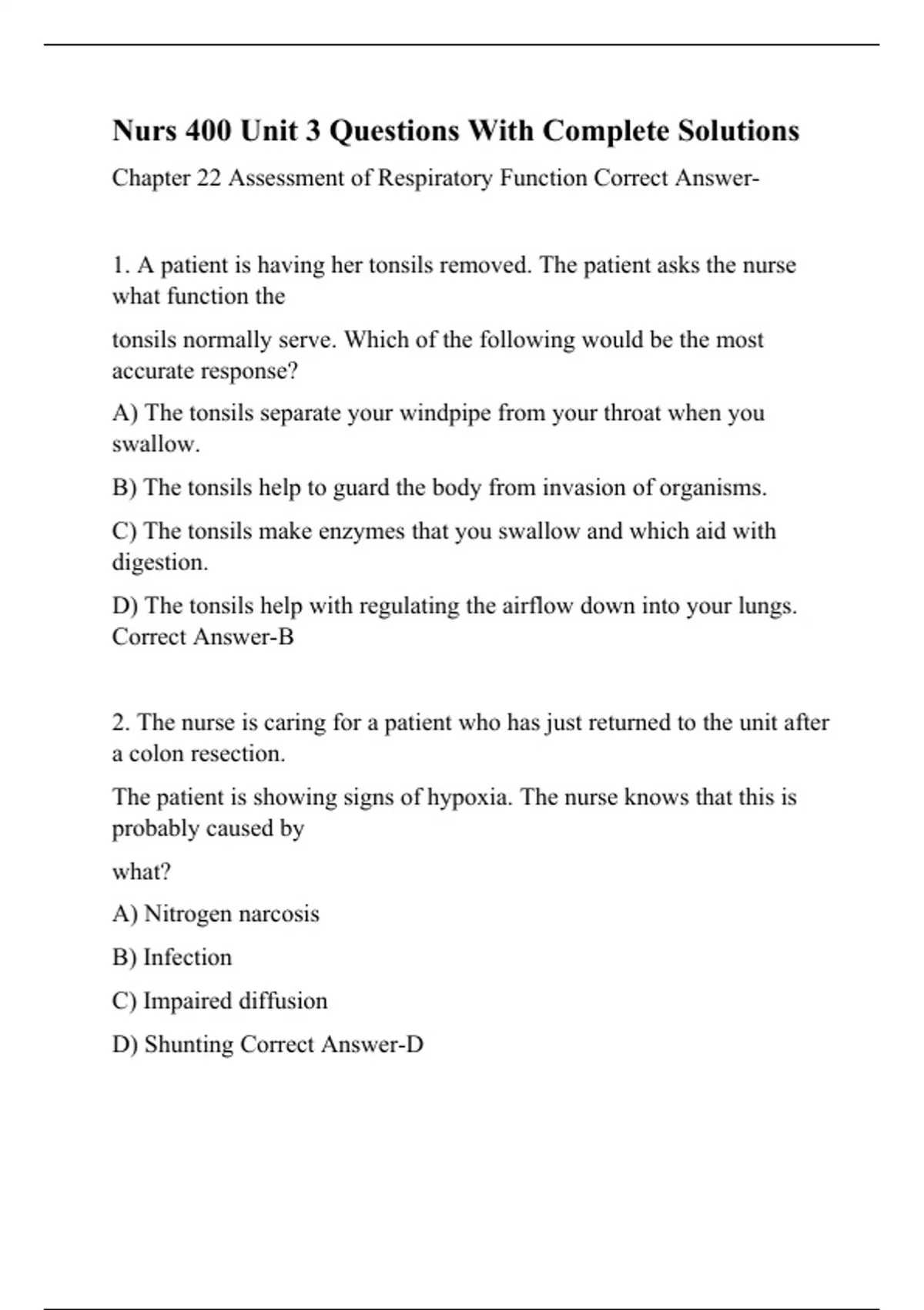 Nurs 400 Unit 3 Questions With Complete Solutions