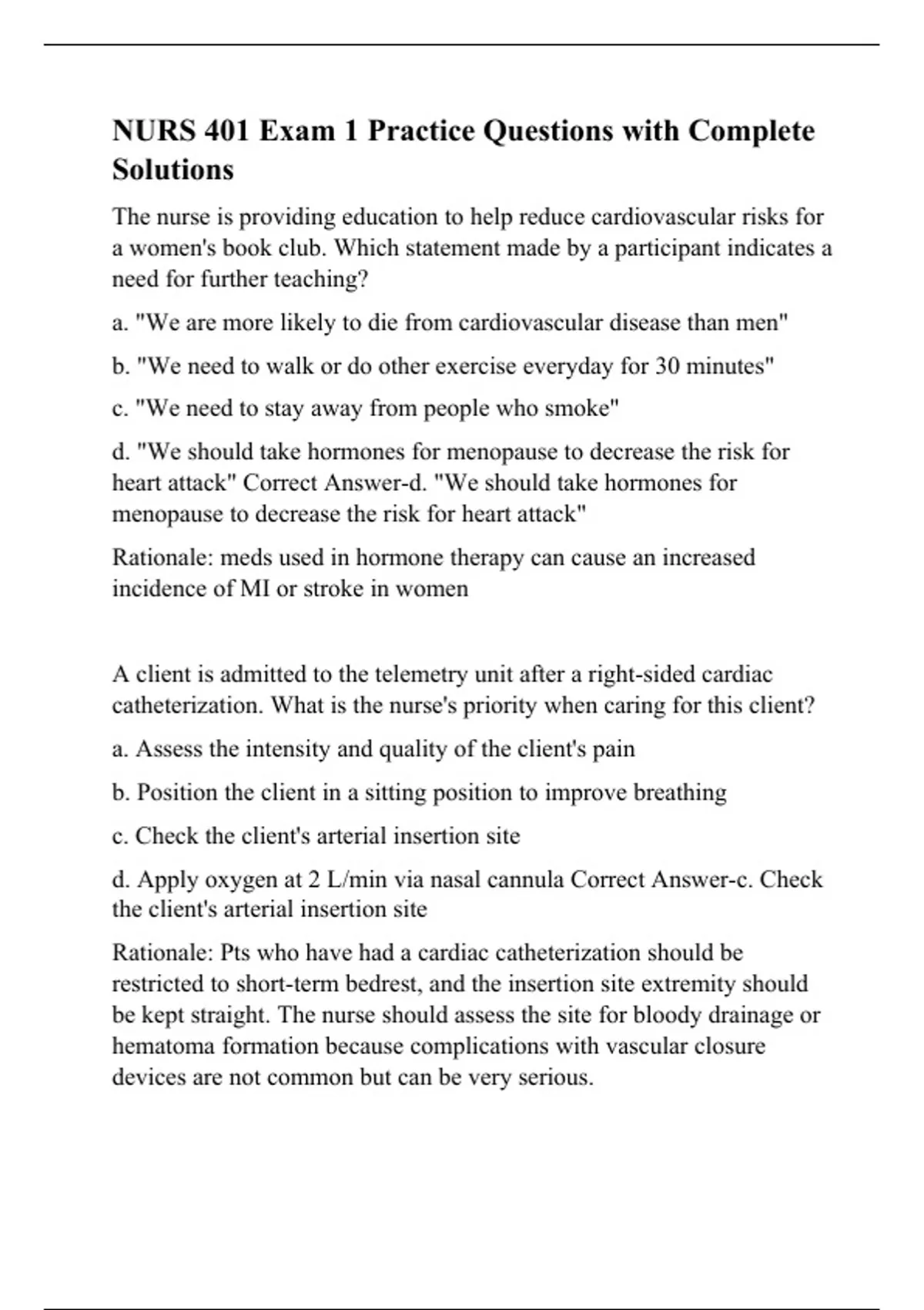 NURS 401 Athabasca University -NURS 401 Exam 1 Practice Questions with Complete Solutions
