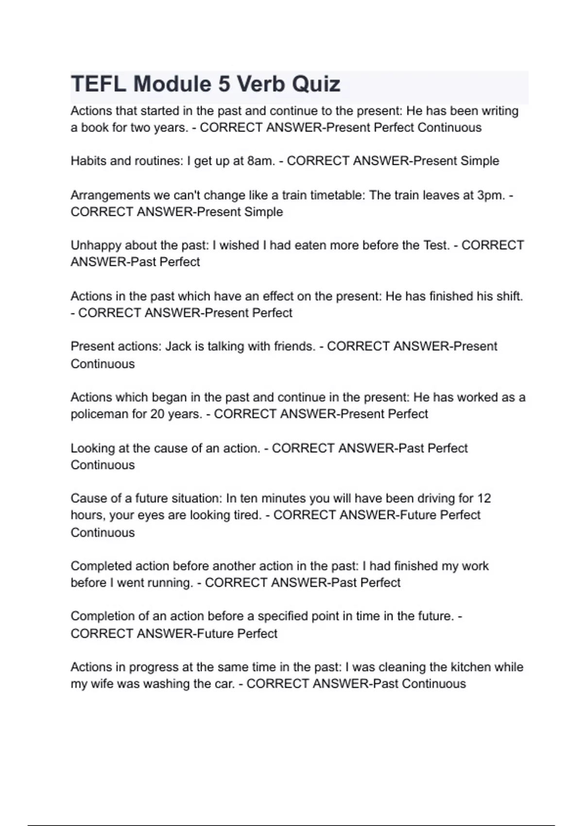 TEFL Module 5 Verb Quiz with 100% Correct Answers