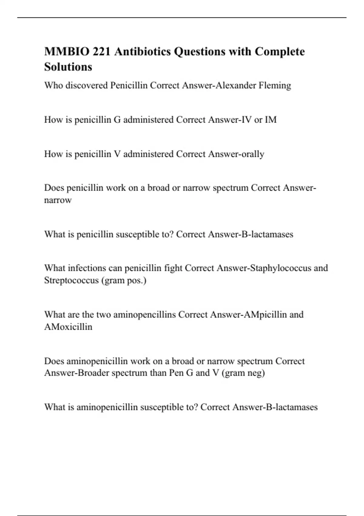 MMBIO 221 Antibiotics Questions with Complete Solutions