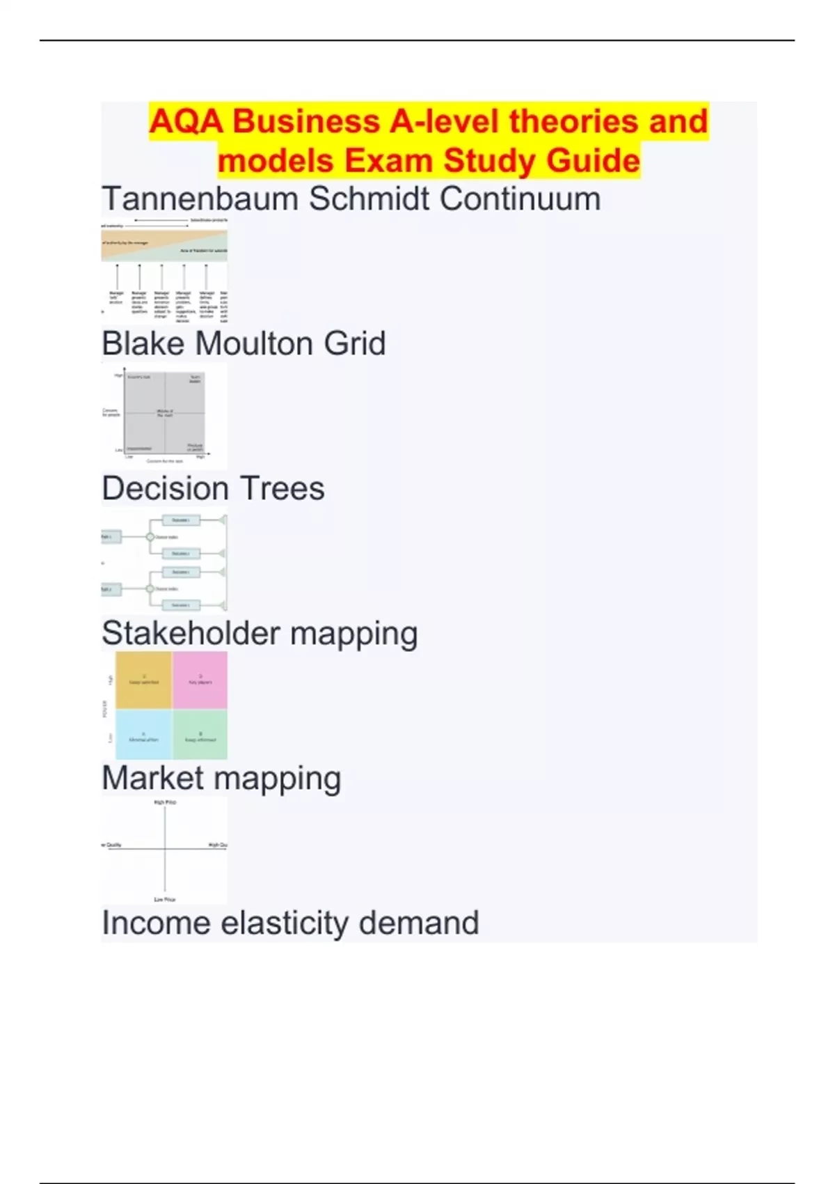 AQA Business A-level theories and models Exam Study Guide