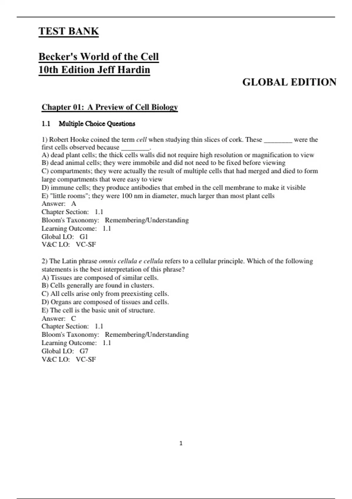 Test Bank Becker's World of the Cell 10th Edition Jeff Hardin, Gregoryl Bertoni, Lewis Kleinsmith, 9781292426525 (Chapters 1-26). Becker's World of the Cell Tenth Global Edition Test Bank / Jeff Hardin 10e Test Bank Becker's World of the Cell. Becker's World of the Cell 10th Edition by Jeff Hardin, 9780135259498 (Test Bank).