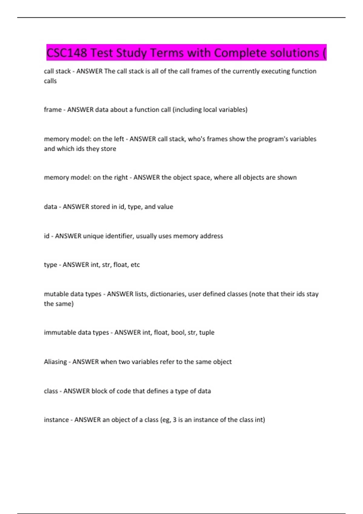 call stack - ANSWER The call stack is all of the call frames of the currently executing function calls frame - ANSWER data about a function call (including local variables) memory model: on the left - ANSWER call stack, who's frames show the program's variables and which ids they store memory model: on the right - ANSWER the object space, where all objects are shown data - ANSWER stored in id, type, and value
