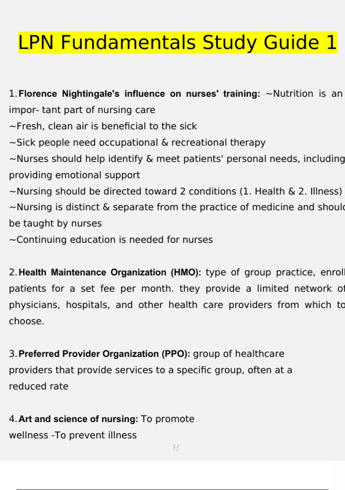 LPN Fundamentals Study Guide 1