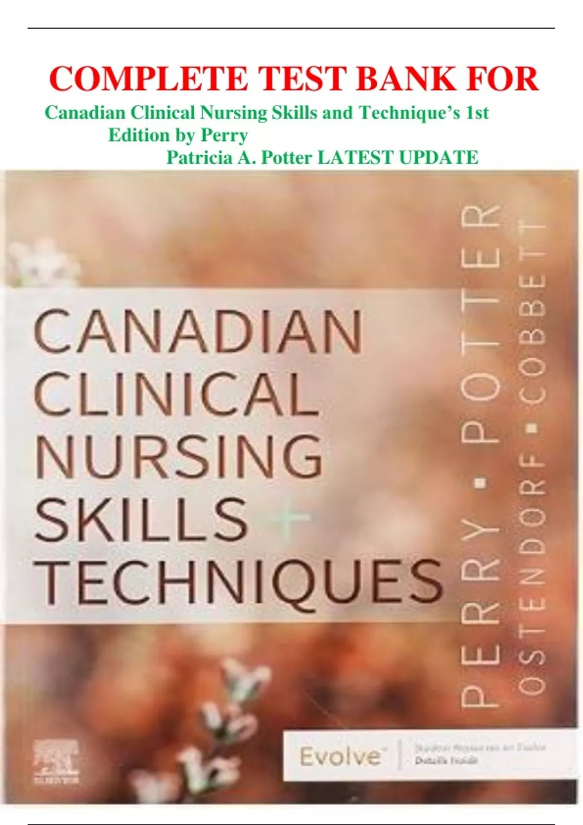 COMPLETE TEST BANK FOR Canadian Clinical Nursing Skills and Technique’s 1st Edition by Perry Patricia A. Potter LATEST UPDATE COMPLETE TEST BANK FOR Canadian Clinical Nursing Skills and Technique’s 1st Edition by Perry Patricia A. Potter LATEST UPDATE