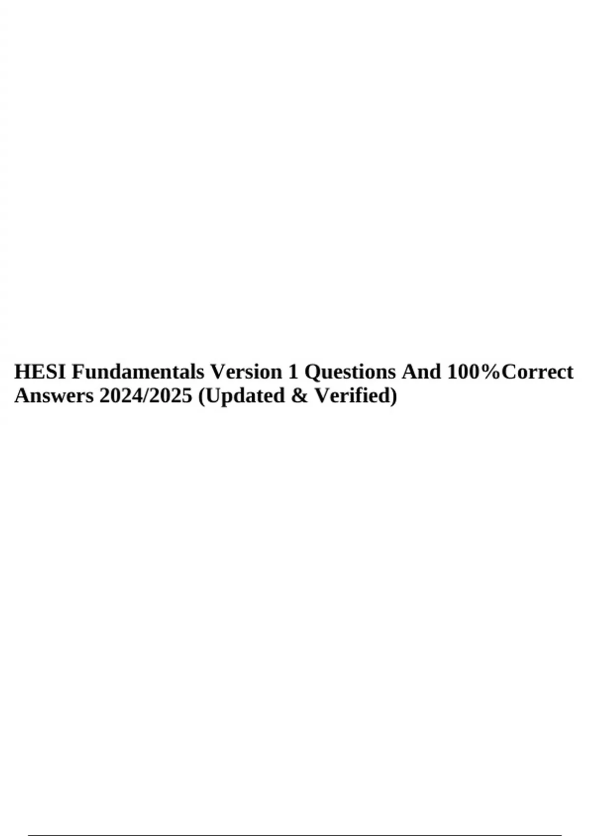 HESI Fundamentals Version 1 Questions And 100%Correct Answers 2024/2025 (Updated & Verified).