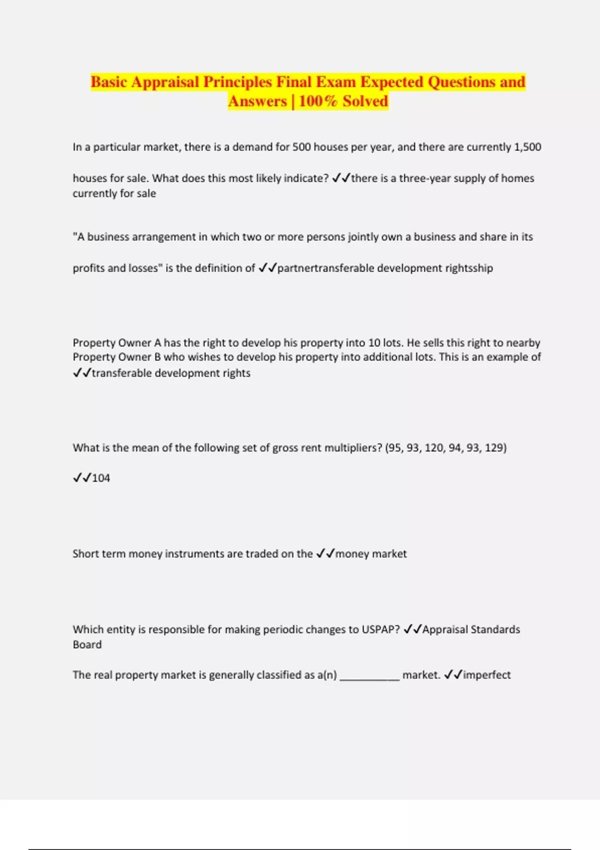 Basic Appraisal Principles Final Exam Expected Questions and Answers | 100% Solved
