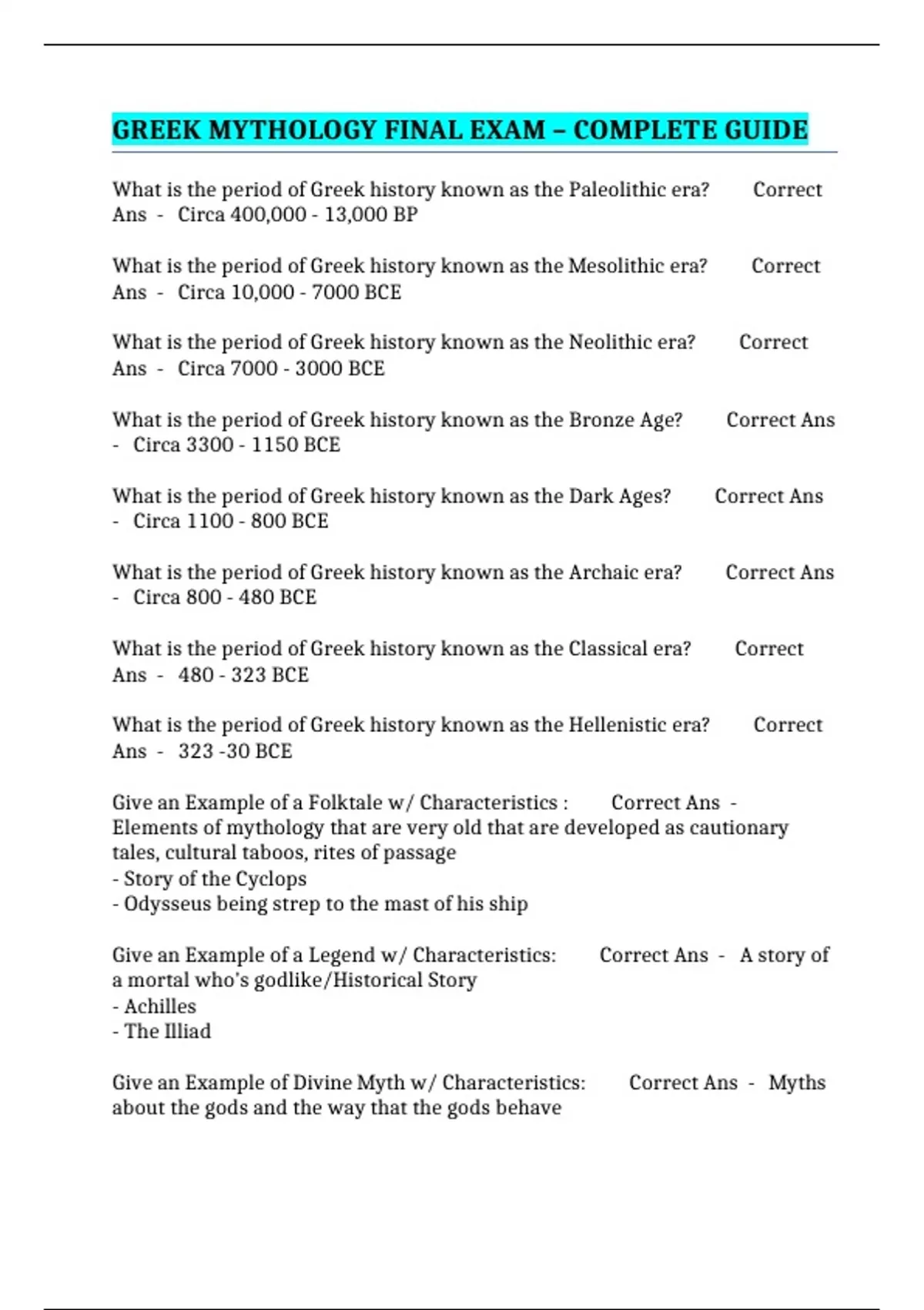 GREEK MYTHOLOGY FINAL EXAM – COMPLETE GUIDE