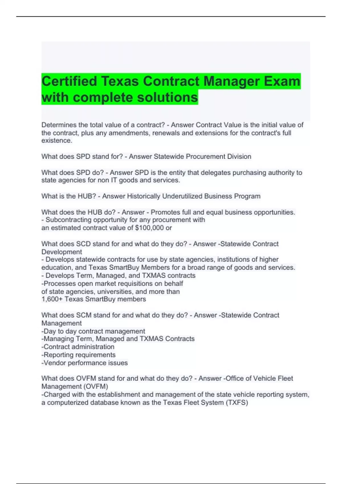 Certified Texas Contract Manager Exam with complete solutions
