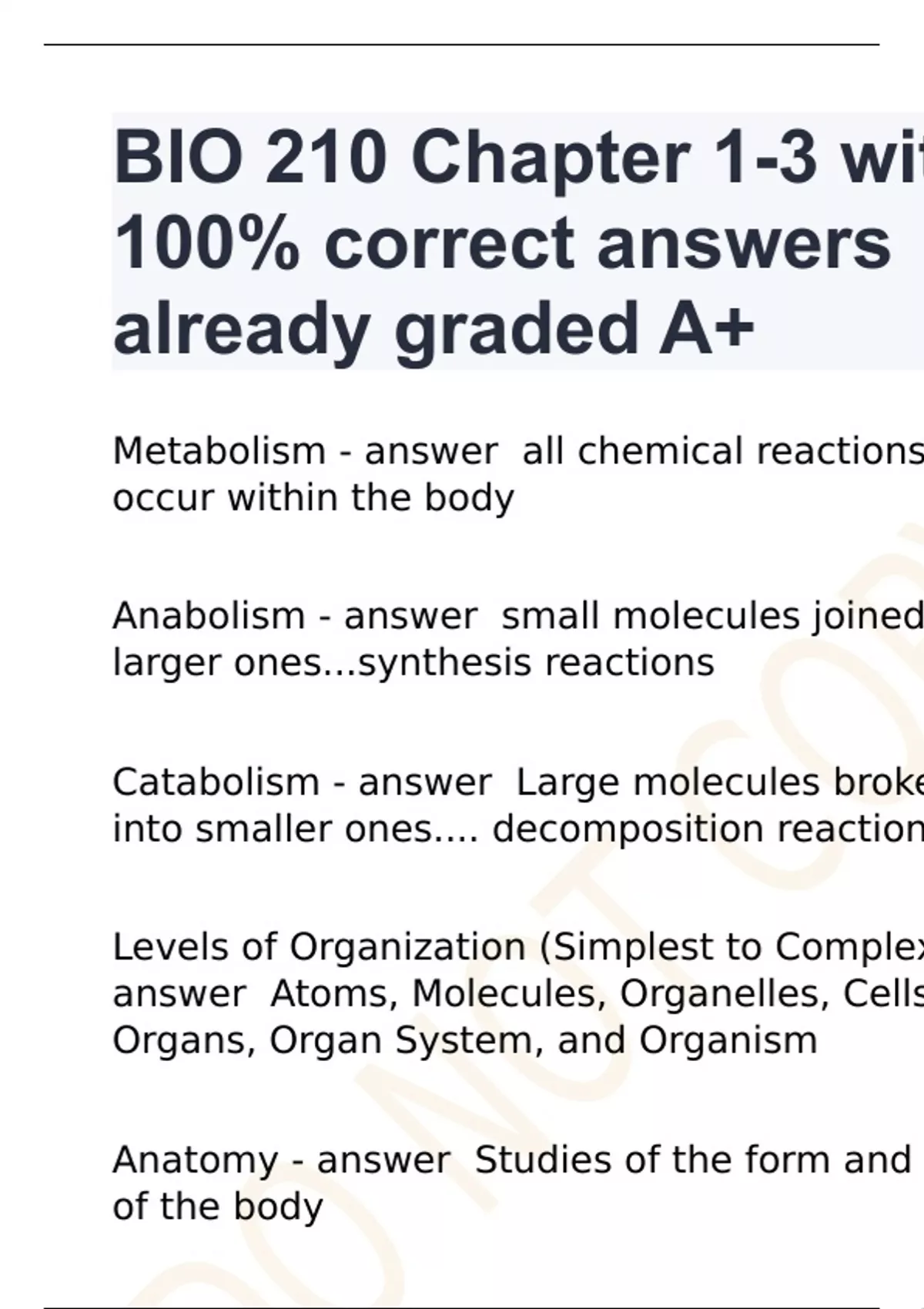 BIO 210 Chapter 1-3 with 100% correct answers already graded A+