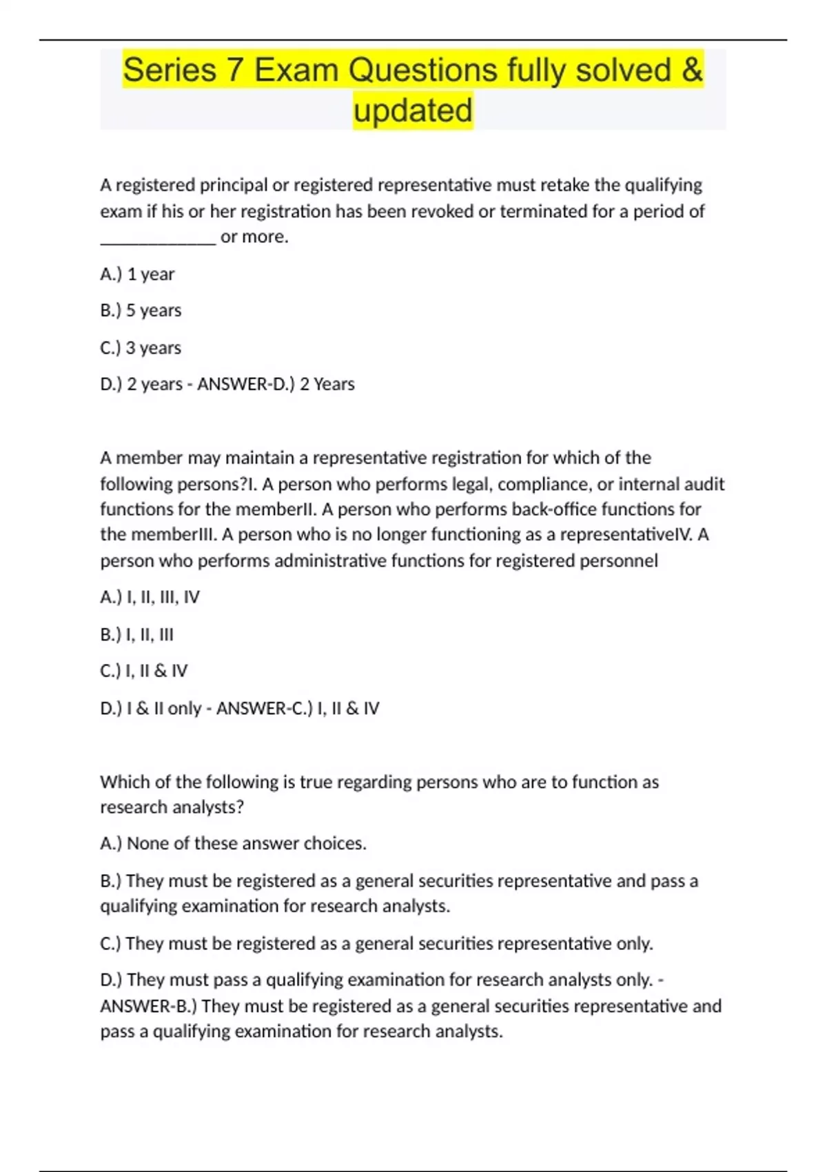 series 7 exam questions fully solved updated