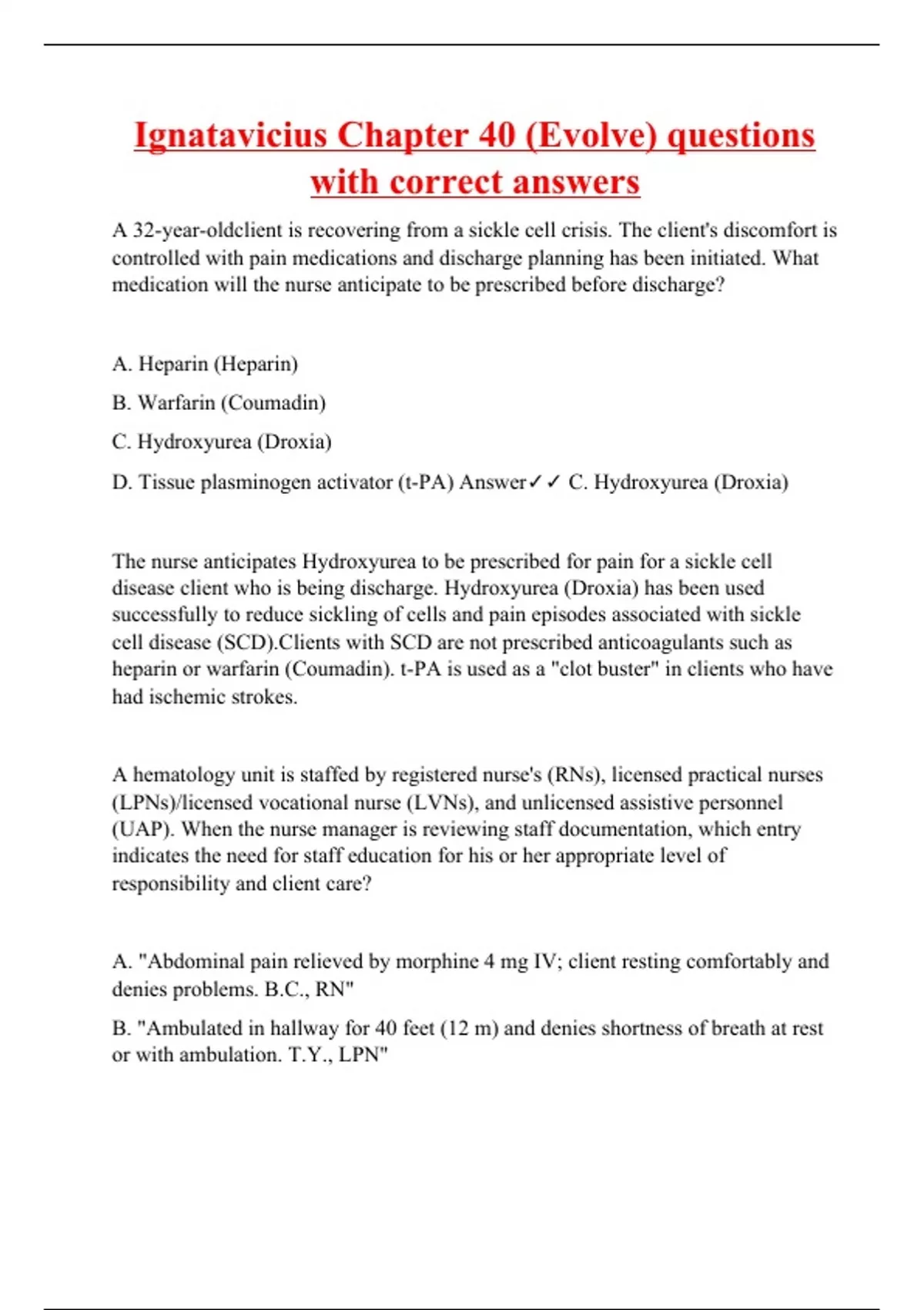 Ignatavicius Chapter 40 (Evolve) questions with correct answers