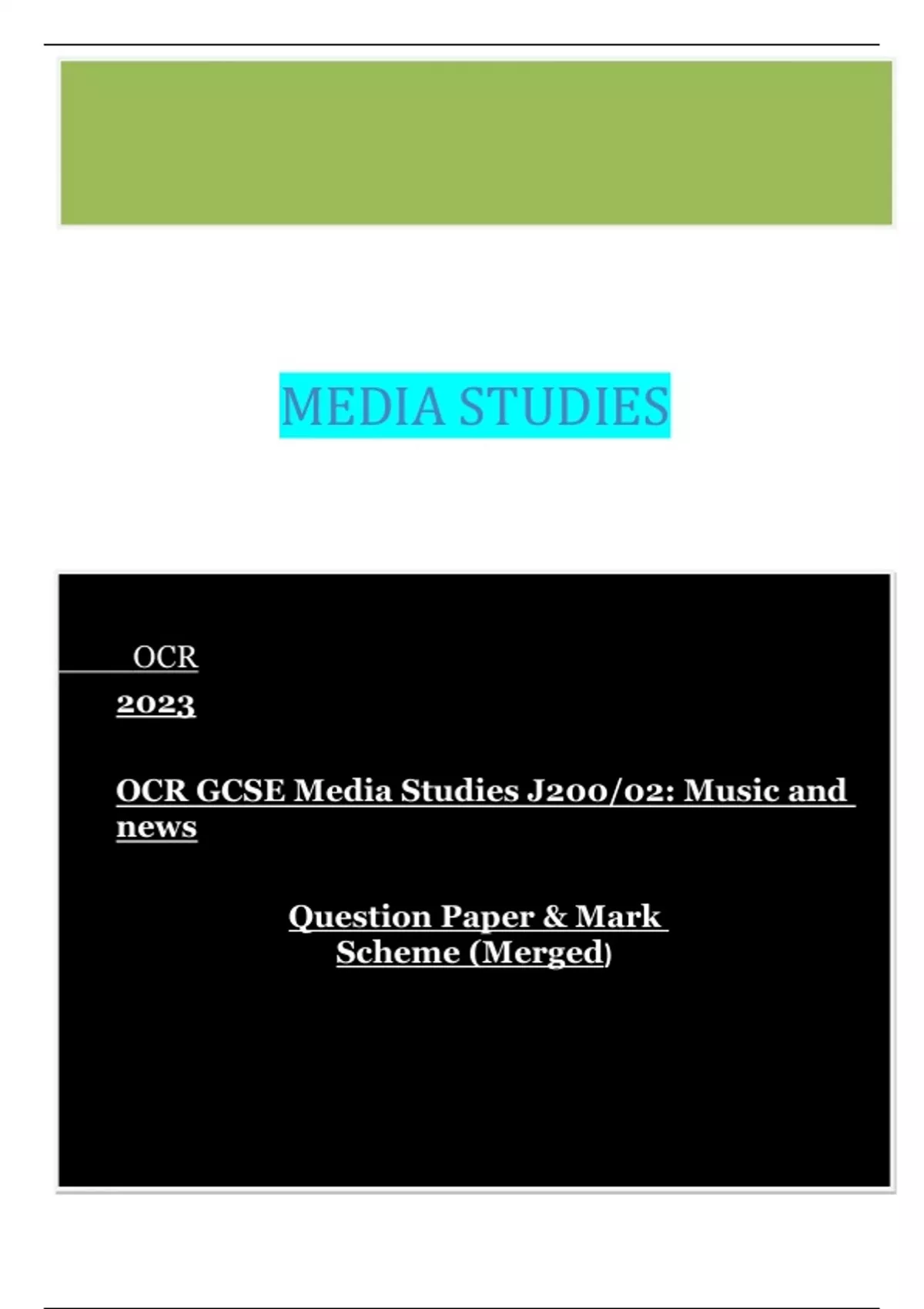 OCR GCSE Media Studies J200/02: Music and news Question Paper & Mark Scheme (Merged)