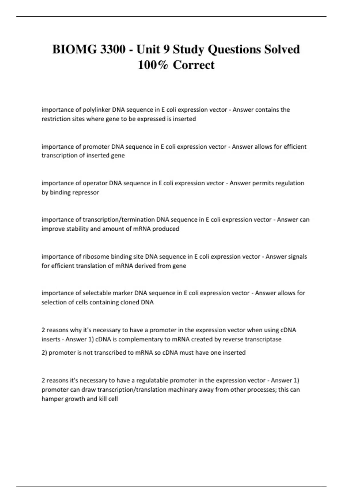 BIOMG 3300 - Unit 9 Study Questions Solved 100% Correct