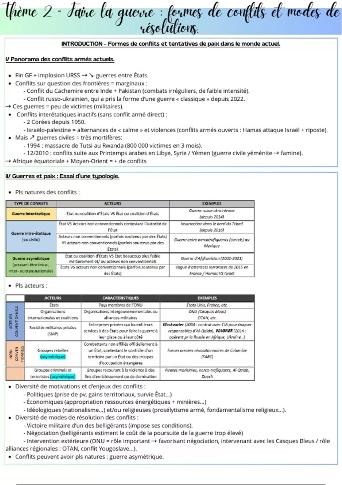 INTRODUCTION - Formes de conflits et tentatives de paix dans le monde actuel.