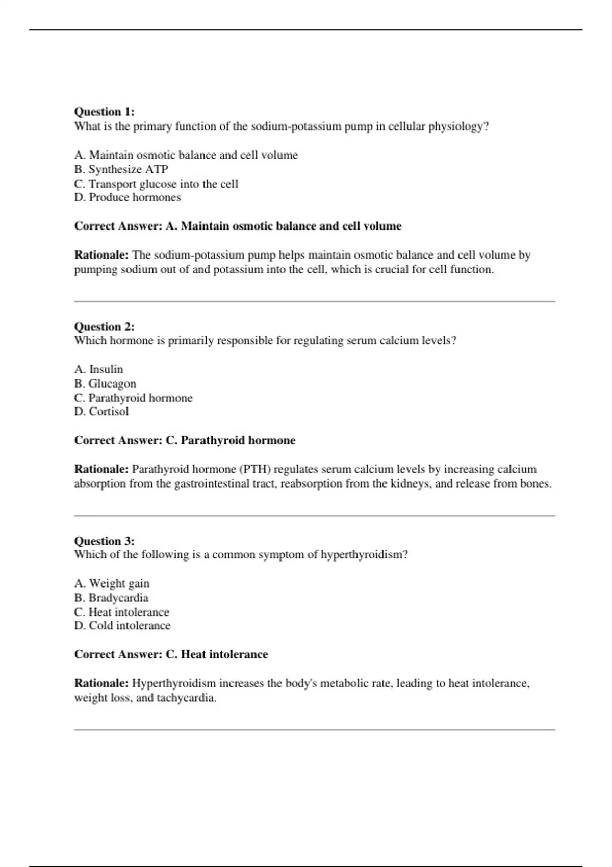 Rationale: The sodium-potassium pump helps maintain osmotic balance and cell volume by