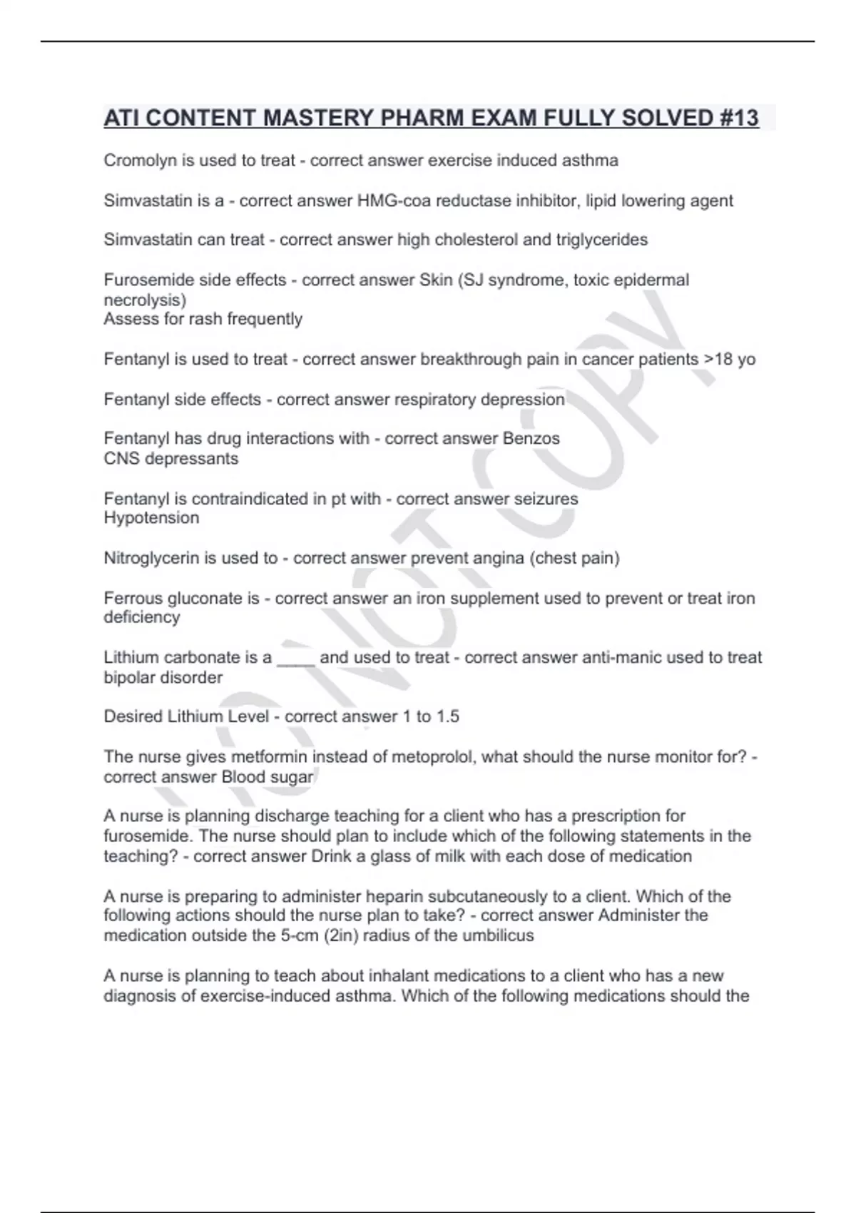 Cromolyn is used to treat - correct answer exercise induced asthma