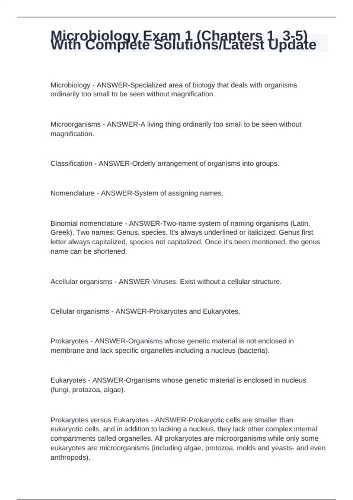 Microbiology Exam 1 (Chapters 1, 3-5) With Complete Solutions/Latest Update